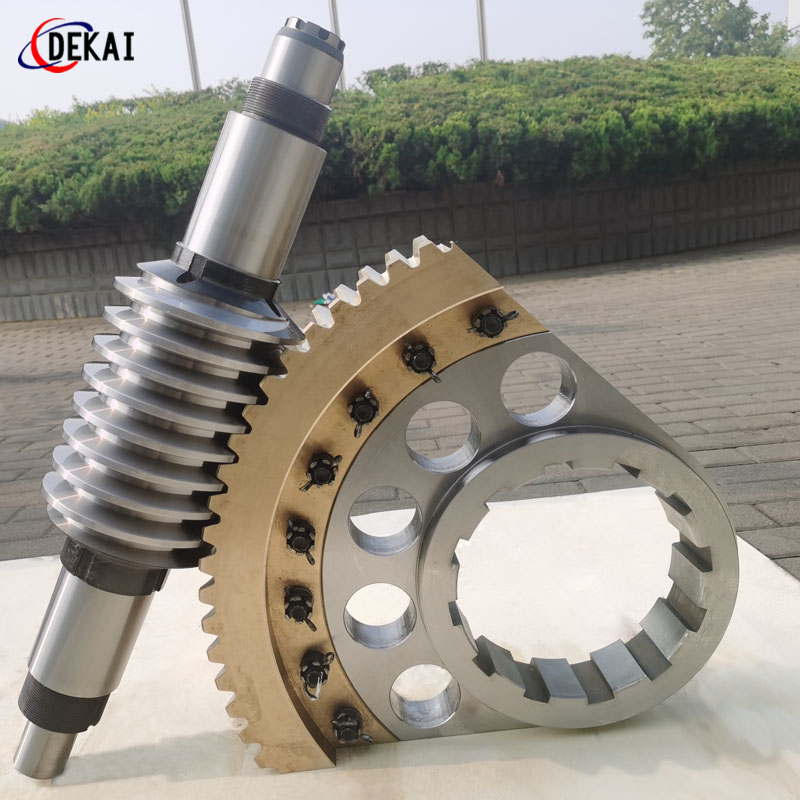 精密雙導程蝸桿副的優點:分度精度高,側隙可調整至0.01~0.03Mmm;齒面接觸穩,不會改變中心距。調整標準,方便可靠。裝配靈活,裝配時,用調整環來獲得合適的嚙合側隙。使用中如果因為磨損導致傳動間隙增大,只要調整一下蝸桿的軸向位置,可以使蝸桿蝸輪傳動副恢復到原來的精度,不需要更換新的蝸桿,蝸輪,比較實用。蝸桿材質采用40Cr,42CrMo、38CrMoAl合金鋼。蝸桿采用錫青銅ZCuSn10Pb1離心澆鑄,具有高強度耐磨性。