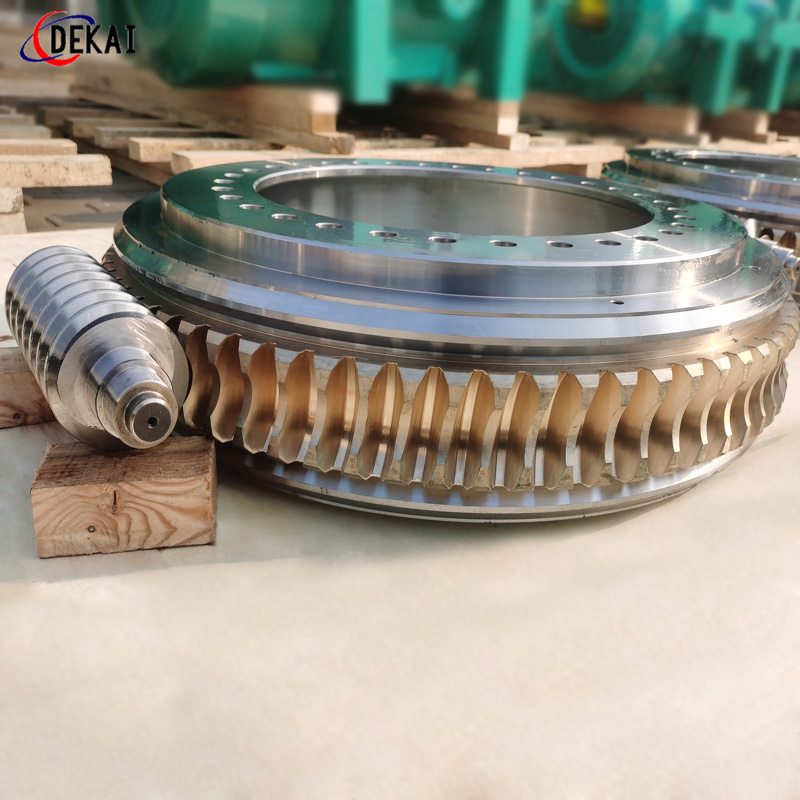 分度精度高,側隙可調整至0.01~0.03Mmm;齒面接觸穩,不會改變中心距。調整標準,方便可靠。裝配靈活,裝配時,用調整環來獲得合適的嚙合側隙。使用中如果因為磨損導致傳動間隙增大,只要調整一下蝸桿的軸向位置,可以使蝸桿蝸輪傳動副恢復到原來的精度,不需要更換新的蝸桿,蝸輪,比較實用。蝸桿材質采用40Cr,42CrMo、38CrMoAl合金鋼。蝸桿采用錫青銅ZCuSn10Pb1離心澆鑄,具有高強度耐磨性。