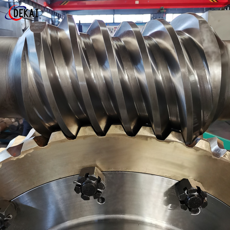 平面二次包絡(luò)環(huán)面蝸桿傳動主要特征是:接觸齒數(shù)多;蝸桿齒面可淬硬磨削;齒面硬度高;齒面光潔度高;齒面接觸面較大,并有瞬時雙線接觸,接觸線總長度長;綜合曲率半徑大,接觸應(yīng)力小,嚙合潤滑角大,嚙合中容易形成動壓油膜,齒面磨損慢。平面二次環(huán)面包絡(luò)蝸桿蝸輪副應(yīng)用于冶金設(shè)備中的軋機(jī),拉絲機(jī),密煉機(jī)等,并在船舶,采礦,機(jī)械,建筑,能源,軍工、化工等各行業(yè)中采用,也可為各企業(yè)的重型設(shè)備設(shè)計制造專用蝸輪減速機(jī)及蝸輪副。
