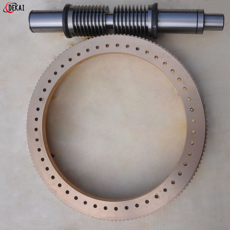 精密雙導(dǎo)程蝸桿副的優(yōu)點(diǎn):分度精度高,側(cè)隙可調(diào)整至0.01~0.03mm;齒面接觸穩(wěn),不會(huì)改變中心距;調(diào)整準(zhǔn)確,方便可靠;裝配靈活,裝配時(shí),用調(diào)整環(huán)來(lái)獲得合適的嚙合側(cè)隙;使用中如果因?yàn)槟p導(dǎo)致傳動(dòng)間隙增大,只要調(diào)整一下蝸桿的軸向位置,可以使蝸桿蝸輪傳動(dòng)副恢復(fù)到原來(lái)的精度,不需要更換新的蝸桿蝸輪。蝸桿-材質(zhì)采用40Cr、42CrMo、38CrMoAl合金鋼;蝸輪-采用錫青銅ZCuSn10Pb1離心澆鑄,具有高強(qiáng)度耐磨性。
