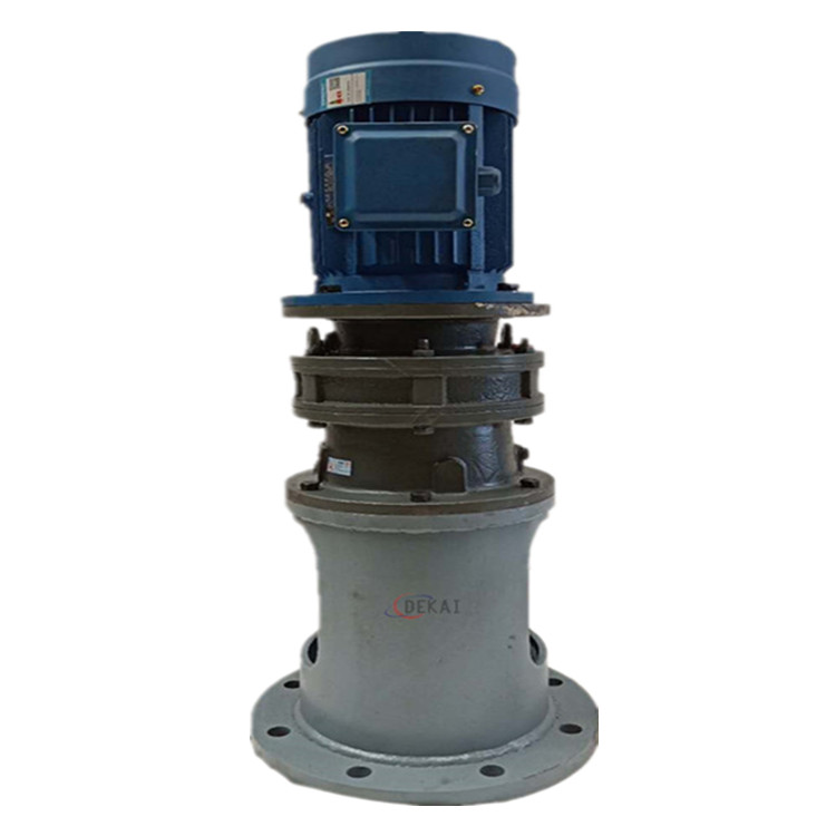 機架的選用:原則上是根據減速機輸出軸徑的大小來確定機架型號,只要接口形式及尺寸相符,減速機的輸出軸大小在一定范圍內可以對機架型號作上下浮動。若選用帶接板機架,減速機的安裝尺寸與機架不符時,在一定范圍內我廠可以調整接板與減速機的聯接,滿足用戶要求。無支點機架:機架本身無軸的支撐點,攪拌軸是以減速機輸出軸的兩個支承軸承為受力支點,可用于傳遞小功率、不受或受較小軸向負荷、攪拌不大強烈的攪拌裝置。攪拌軸與減速機的聯接必須用剛性聯軸器,特別是以JQ型夾克聯軸器或SF型三分式聯軸器為佳。單支點機架:具備下列條件之一者,建議選用但支點機架;a、攪拌容器設置底軸承,作為一個受力支點。b、軸封本體設有軸承(包括剛性襯套),作為一受力支點(受力程度按軸封要求規定)。c、攪拌容器內,軸中部設有導向軸承,作為一個受力支點(中間軸承)。當具備上述條件的攪拌軸,在選用單支點機架時,攪拌軸與減速機之間的聯軸器須選用彈性聯軸器。在實際應用中常用剛性聯軸器代替彈性聯軸器聯接攪拌軸與減速機出軸,取消底軸承或中間軸承等支點。這樣使用,簡化了單支點機架的應用條件,但只適宜于攪拌不強烈、功率小、對軸承負荷較小的場合。則必須對支點的軸承結構進行變動,采用帶緊定套的錐孔調心滾子軸承,或者取掉夾殼聯軸器中的懸吊環,使攪拌軸的軸向位置有適當調整的余地。