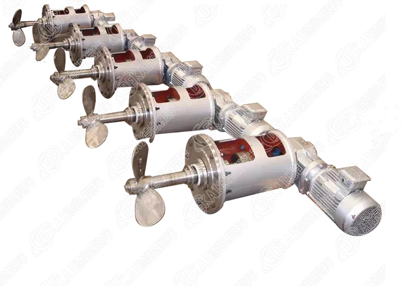 側(cè)入式攪拌器是將拌和設(shè)備安裝在設(shè)備筒體的側(cè)壁上,攪拌機上的攪拌器通常選用軸流型,以推動式拌拌器為多,在耗費平等功率情況下,能得到較高的攪拌作用,功率耗費僅為頂攪拌的1/3~2/3,本錢僅為頂攪拌的1/4~1/3。轉(zhuǎn)速可在200~750r/min。廣泛用于脫硫、除硝以及各種大型貯罐或貯槽的攪拌。特別是在大型貯槽或貯罐中使用一臺或多臺側(cè)入式攪拌器一同作業(yè),在耗費低能耗的情況下便能夠得到杰出的攪拌作用。