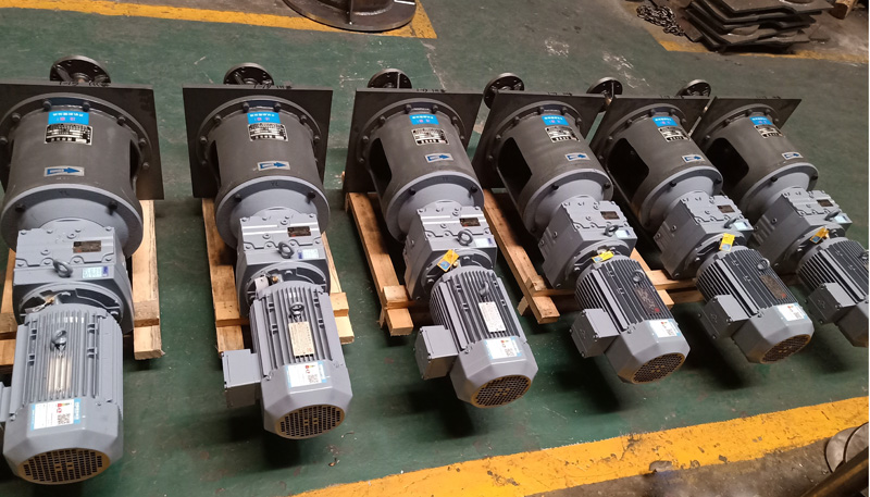 渦輪式攪拌器主要分為開啟式和圓盤式兩類,槳葉有平直葉、彎葉和折葉??墒挂后w均勻地由垂直方向的運(yùn)動改變成水平方向的運(yùn)動,自蝸輪流出的高速液流沿切線方向三開,從而在整個也體內(nèi)得到劇烈攪動。攪拌器廣泛用于快速溶解和進(jìn)行R化操作。攪拌設(shè)備的分類:按攪拌功能分:混合攪拌設(shè)備,攪動設(shè)備、懸浮攪拌設(shè)備、分散攪拌設(shè)備等。按攪拌方式分:機(jī)械攪拌設(shè)備、水力攪拌設(shè)備、氣體攪拌設(shè)備、磁力攪拌設(shè)備等。按攪拌目的分:溶藥攪拌設(shè)備、混合攪拌設(shè)備、絮凝攪拌設(shè)備、澄清攪拌設(shè)備、混合攪拌設(shè)備、絮凝攪拌設(shè)備,澄清攪拌設(shè)備,消化池攪拌設(shè)備和水下攪拌設(shè)備等。按液體的循環(huán)流動形式分:軸向流和徑向流攪拌器兩類。攪拌設(shè)備的組成一般由攪拌器、傳動裝置及攪拌軸系三大部分組成。攪拌器主要由攪拌槳和構(gòu)件組成;傳動裝置由電動機(jī)、減速機(jī)以及支架等組成;攪拌軸系由攪拌軸、軸承和聯(lián)軸器等組成。水處理工藝對攪拌的要求可分為混合、攪動、懸浮、分散四種?;旌鲜峭ㄟ^攪拌作用,使與水的比重,黏度不同的物質(zhì)在水中混合均勻;攪動是通過攪拌使混合液強(qiáng)烈流動,以提高傳熱、傳質(zhì)的速率;懸浮是通過攪拌作用,使原來靜止在水體中可沉降的固體顆粒或液滴懸浮在水體中;分散是通過攪拌作用,使氣體、液體或固體分散在水體中,加大不同物相的接觸面積,加.快傳熱和傳質(zhì)過程。實(shí)現(xiàn)攪拌的目的是通過能.量傳遞。